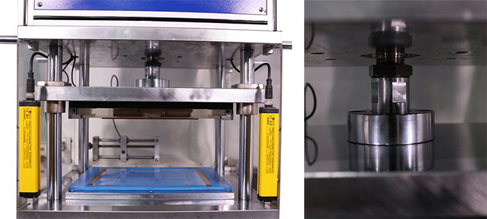 The max die dimension of this pouch cell die cutter is 300*300mm, also we can provide various shapes of knife dies according to customer requirements to realize the forming and die-cutting of battery pole pieces of different sizes.