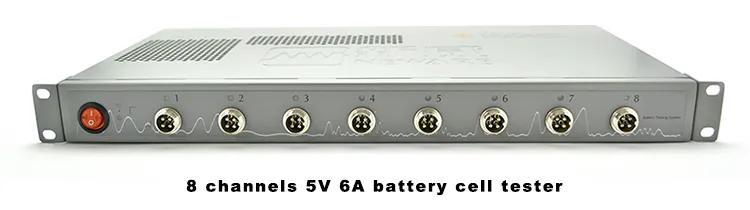 8-channel high-precision battery test system designed to measure battery performance up to 5V in the range of 12mA to 12A. This system is the best tool to study the next generation of energy storage materials and rechargeable batteries. Designed according to international standards, the system for each channel has an independent constant current source and constant voltage source. The constant current source and constant-voltage source can be programmed and controlled according to the scheme. In addition, each channel has an independent signal source to meet the dynamic requirements of internal resistance measurement.