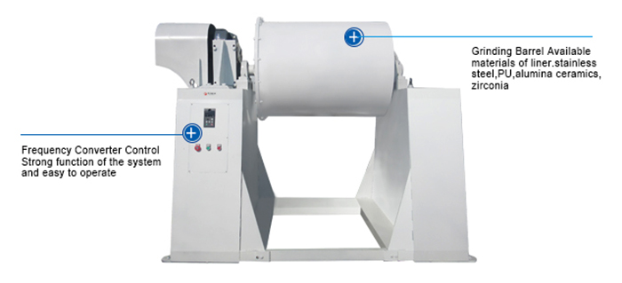The Optimal design of rotating speed is adopted in the machine, where the mill jar is dragged to rotate by rubber roller, balls inside the jar make incline flow movement and disperse materials, thus it obtains the best effects of grinding. As result, materials are ground to micron powder.