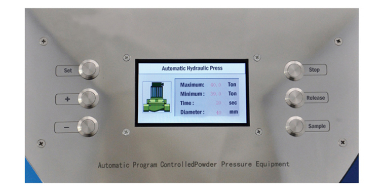 The pressure increase rate during pressing is also automatically controlled which will gradually reduce when approaching the designated pressure. With these features, this automatic lab press delivers better pressure control accuracy than the manual hydraulic press.